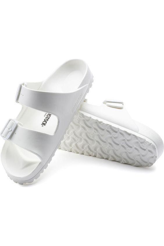 El modelo Arizona de BIRKENSTOCK es un auténtico clásico. Inspirado en la sandalia de corcho, este modelo está hecho de EVA. El material plástico EVA es de alta calidad, no tiene olor ni sustancias contaminantes y reúne muchas características positivas: es muy ligero, de alta elasticidad, resistente al agua, es respetuoso con la piel y ofrece el confort habitual de BIRKENSTOCK.