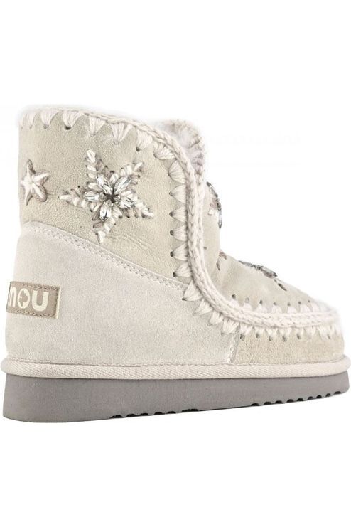 Las eskimo 18 con estrellas de lana y pedrería están fabricadas a mano por manos expertas con un cálida capa de piel de oveja de doble cara, costuras de lana de ganchillo, un soporte de apoyo para el talón y suela exterior de EVA. Increíblemente cómodas y resistentes. Altura 18 cm. Regular fit.