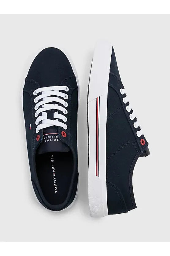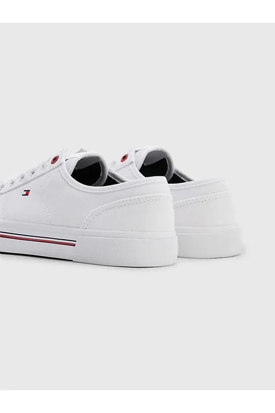 Estas zapatillas de corte bajo, confeccionadas en lona de puro algodón, lucen una suela gruesa de goma vulcanizada y un diseño versátil que permite conjuntarlas con cualquier conjunto.
