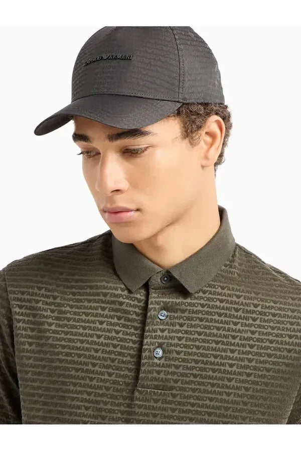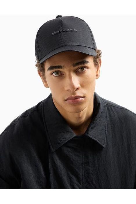 Gorra de béisbol en nailon con inscripción integral de logotipo en tejido jacquard tono sobre tono. El accesorio urbano icónico por excelencia: la gorra de béisbol, de plena tendencia últimamente, completa con ironía cualquier atuendo con el que se la combine.