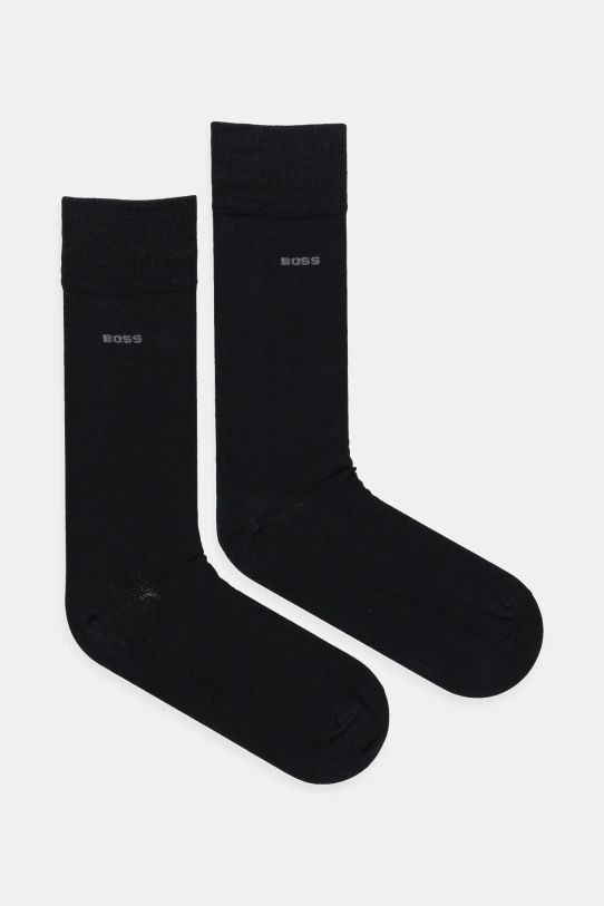 Dos pares de calcetines de BOSS confeccionados de manera impecable en lana con algodón y tejido elástico. Cada par de largo normal tiene un detalle de logotipo.