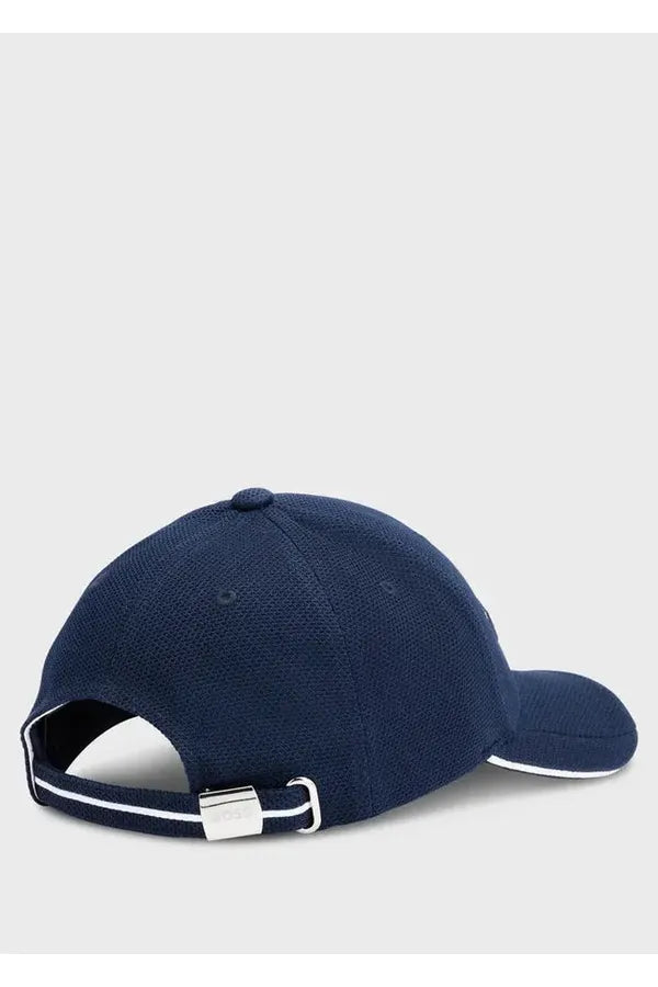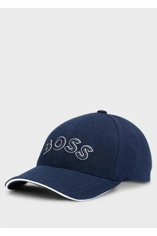 Una gorra BOSS de confección experta en piqué tejido con logo bordado curvado y detalles en contraste.
