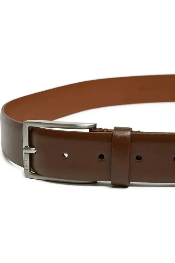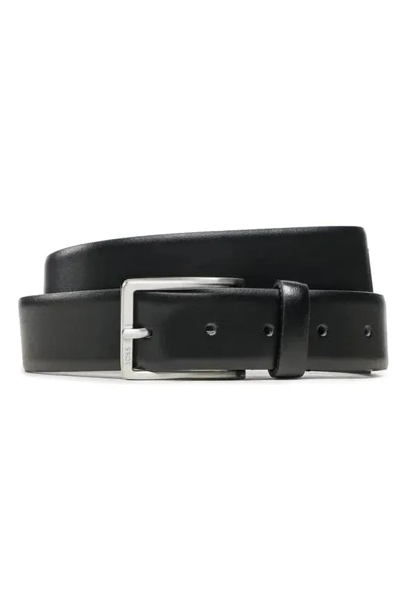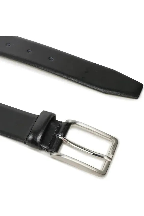 Un elegante cinturón BOSS de 3,5 cm muy versátil fabricado en Italia con piel lisa y hebilla plateada pulida con logo grabado. Este diseño Dressletic combina una innovadora tecnología de altas prestaciones con un ajuste a medida. Gracias a su tira elástica incluida cerca de la hebilla con logo grabado, mantiene un ajuste óptimo a la vez que resulta comodísimo, la opción ideal para el trabajo o para viajar.