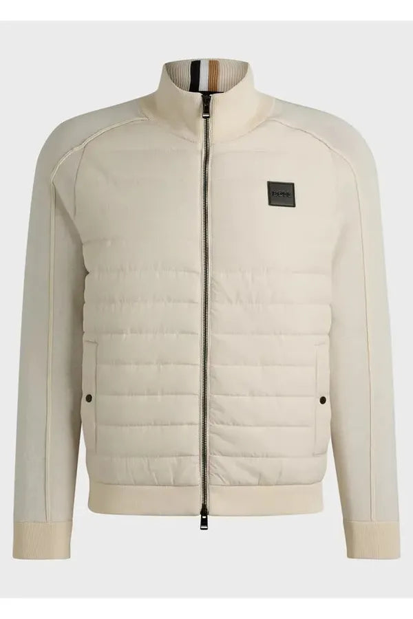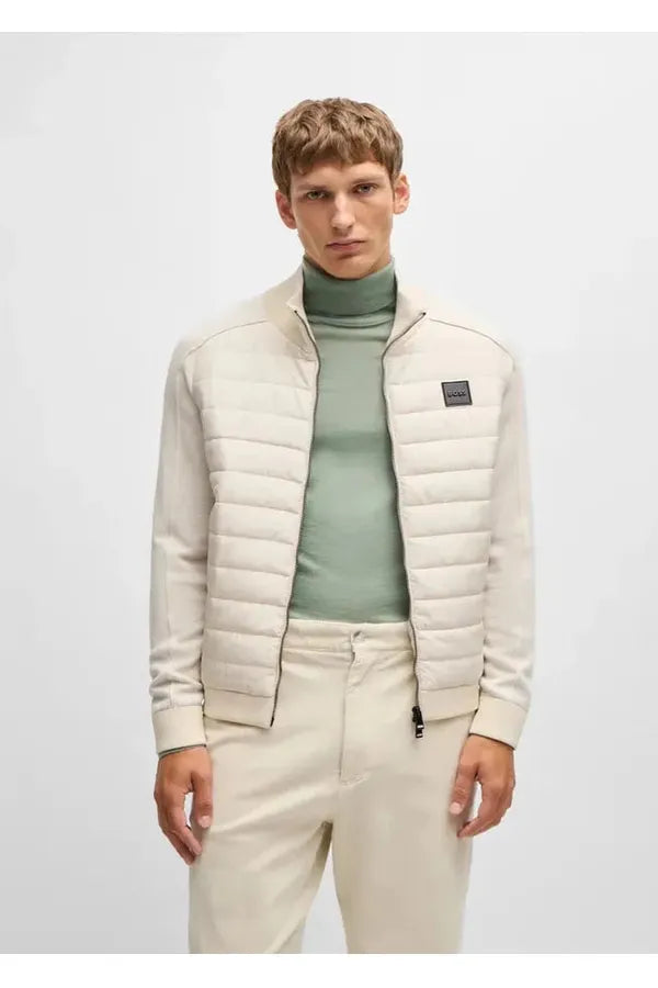 Una cazadora acolchada BOSS con cremallera elaborada en mezcla de materiales. Este diseño regular fit se presenta en lana virgen con una insignia de logo.