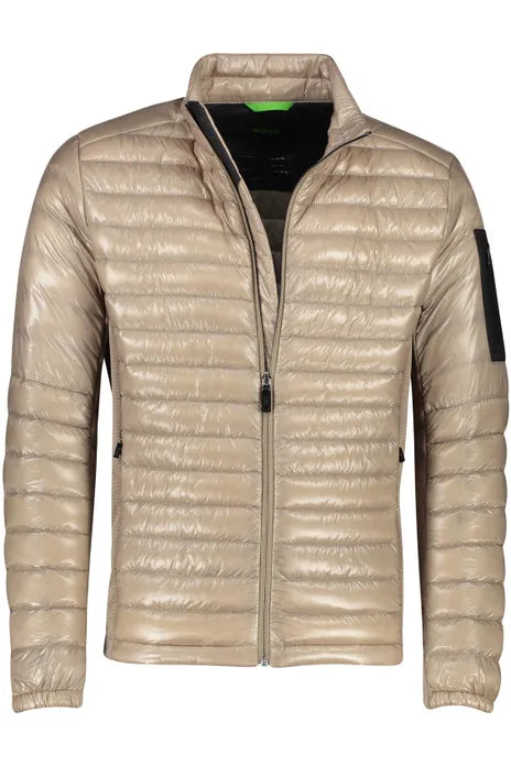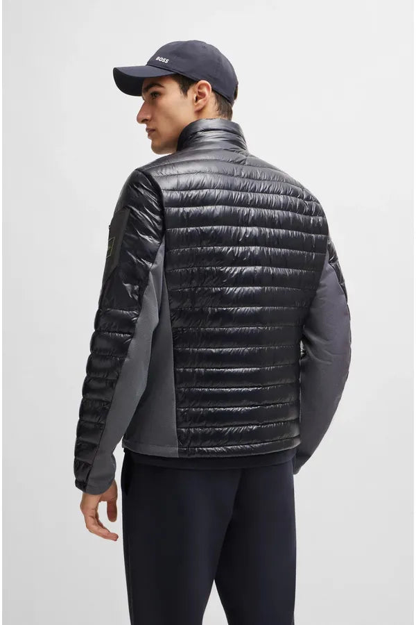 Una chaqueta BOSS Hombre de entretiempo ultraligera, con acabado repelente al agua, paneles laterales elásticos y relleno de pluma y plumón de pato certificado.