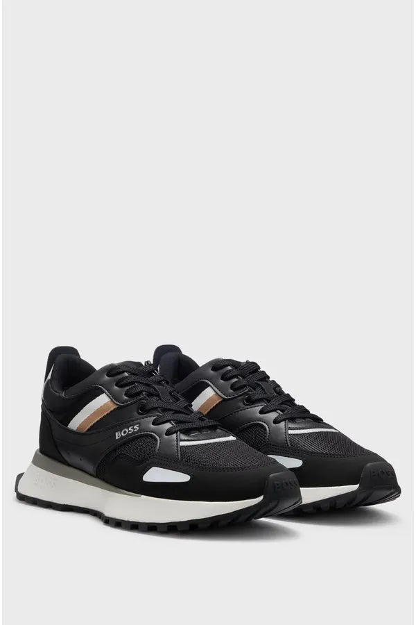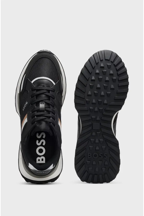 Deportivas de estilo atlético con cincha a rayas de la marca BOSS, elaboradas en una mezcla de texturas con malla y tejido sintético revestido.