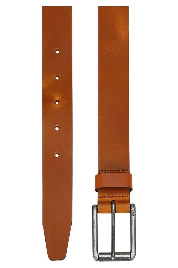 Cinturón versátil de 4 cm de BOSS, diseñado en piel lisa con hebilla con el logotipo grabado. Para un ajuste óptimo, recomendamos pedir un cinturón de una talla más grande que la medida de tu cintura.