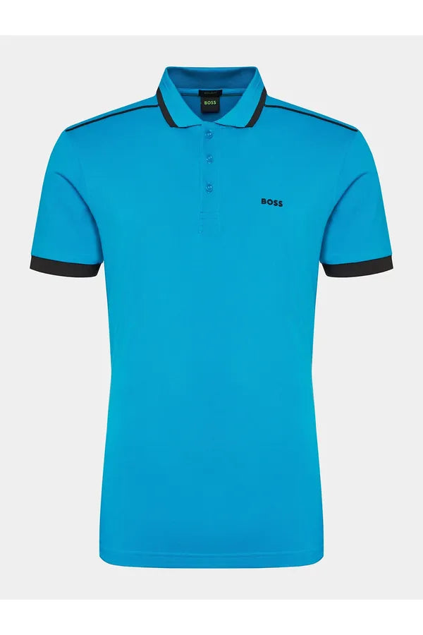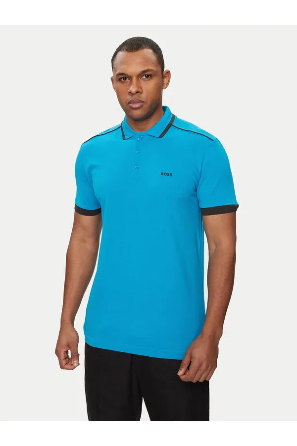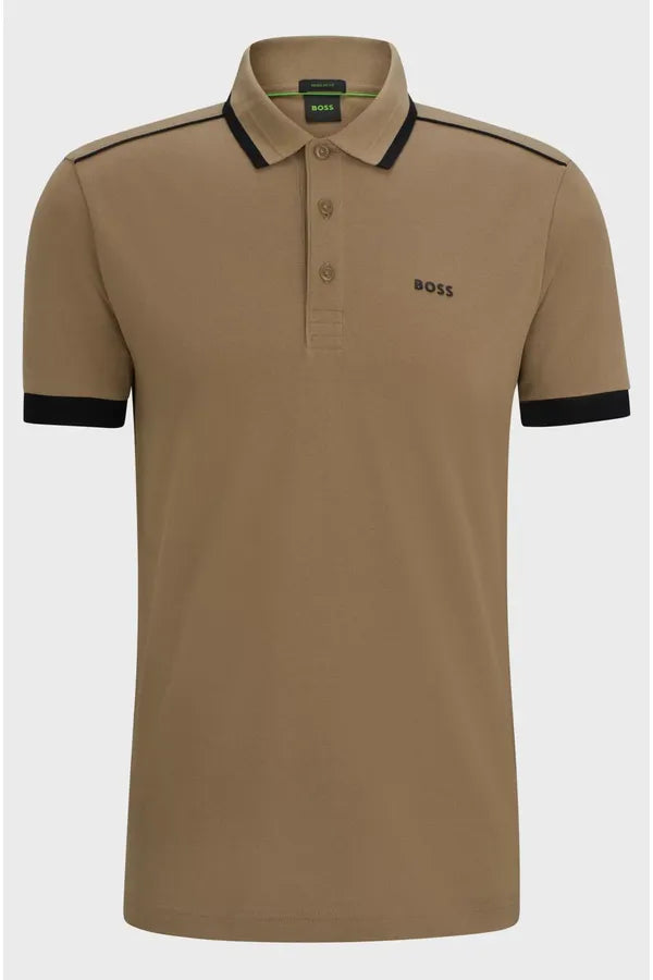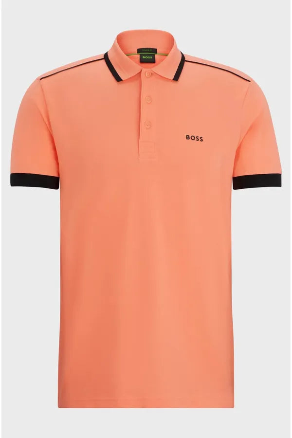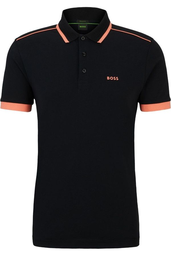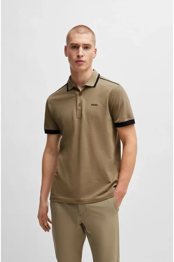 Un polo BOSS Hombre deportivo con corte recto, confeccionado en piqué de algodón con detalle de la marca en contraste, ribeteado en los hombros y detalles de rayas.