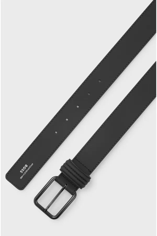 Un cinturón de 3,5 cm BOSS de líneas limpias y modernas. Este accesorio con detalle doble de la marca y herrajes en negro mate está elaborado en piel lisa italiana. Forma parte de la colección cápsula Porsche x BOSS, una colección de modelos atrevidos que reflejan el carácter decidido y determinado que caracteriza a BOSS. Si quiere lograr un ajuste impecable, recomendamos pedir un cinturón de una talla superior a la de su cintura.