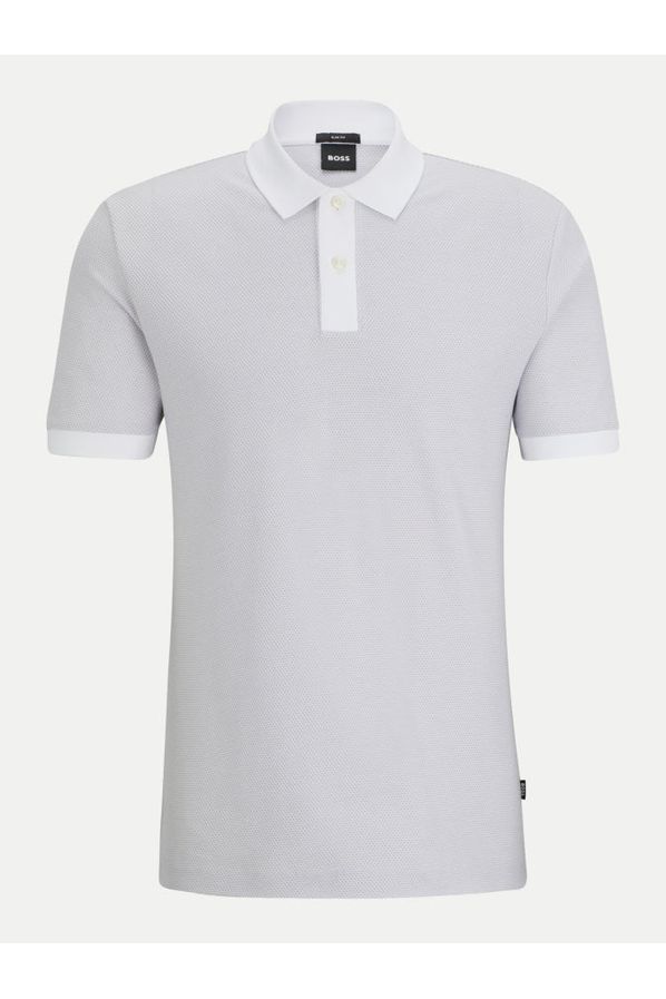 Un polo BOSS Hombre slim fit, elaborado con algodón mercerizado y tejido en estructura de malla que produce un efecto de dos tonos.