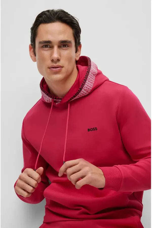 Una sudadera con capucha casual BOSS Hombre. Esta sudadera con capucha y corte recto es ideal para vestir a capas; incluye un logo BOSS en la parte izquierda del pecho y extremos de cordón en dos tonos que le aportan un aire deportivo. El borde de la capucha se ha bordado con logos de varios colores.