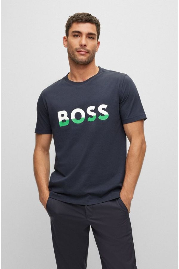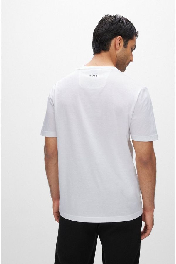 Camiseta BOSS Hombre regular fit de manga corta. Esta camiseta de punto sencillo y tacto muy suave se presenta adornada con un logo BOSS pequeño en la nuca y con un detalle de la marca a gran tamaño en bloques de color que cruza el pecho. En nuestros productos RESPONSIBLE siempre utilizamos como mínimo un 60 % de materias primas más sostenibles. Al comprar este producto, está contribuyendo a proteger el medioambiente y la producción de algodón sostenible en África. Cotton made in Africa es una iniciativa de la Aid by Trade Foundation. El algodón que producen se riega al 100 % con agua de lluvia, sin necesidad de otros aportes hídricos. Esta iniciativa apoya a pequeños agricultores para fomentar la igualdad de género, unas condiciones de trabajo dignas y respeto a los derechos del niño. No se utilizan organismos genéticamente modificados y los participantes reciben formación en producción orgánica y métodos de agricultura respetuosos con el clima.
