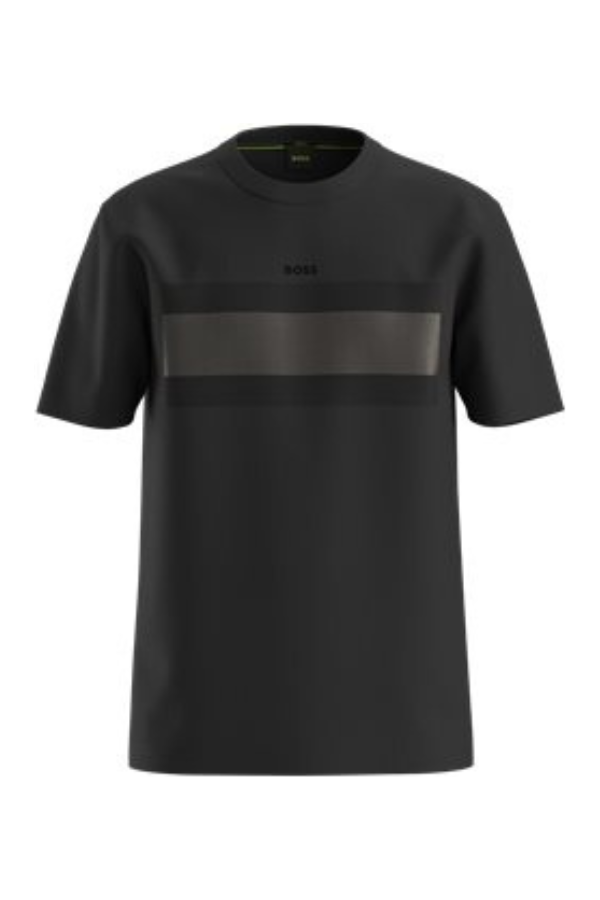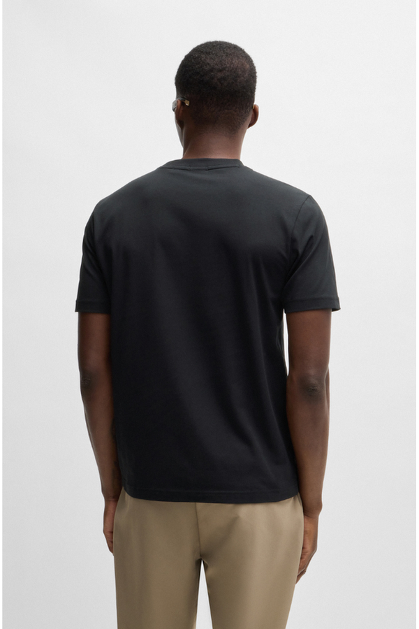 Una camiseta BOSS de estilo casual en punto de algodón elástico. Esta prenda regular fit está decorada con un logo pequeño y un diseño de bandera.