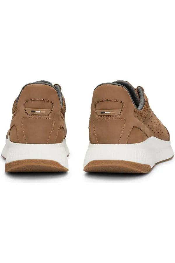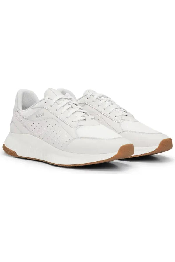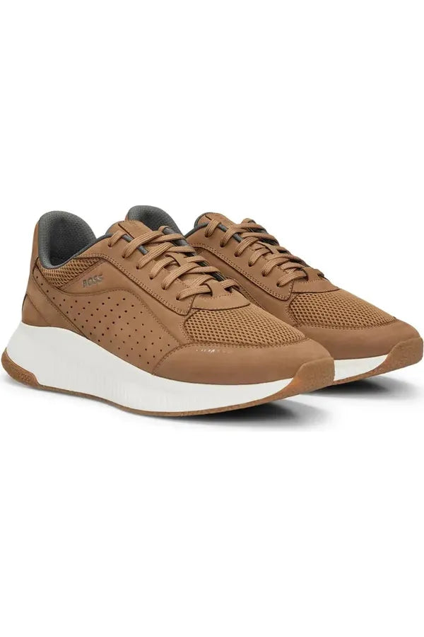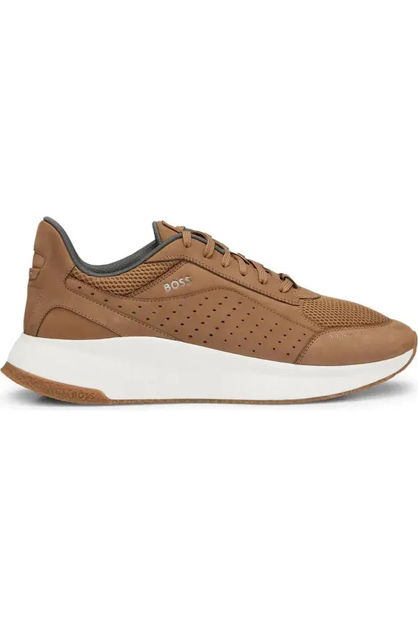 Zapatillas deportivas informales con cordones y forro refrescante de BOSS. Este par está elaborado en piel suave con detalles perforados y malla tejida.
