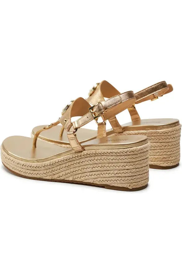 La sandalia Casey, adornada con nuestro elegante dije con el logotipo, brinda estilo a cada paso. Una elegante silueta de tira, detalles en tono dorado y una cuña de yute trenzado se combinan para crear una alternativa refinada a la clásica sandalia de temporada.
