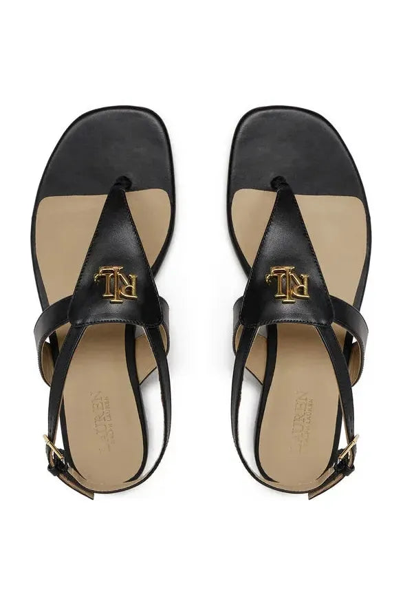Un logotipo “LRL” pulido acentúa el empeine de la sandalia Everley, que presenta una silueta de tira realizada en piel de becerro suave.