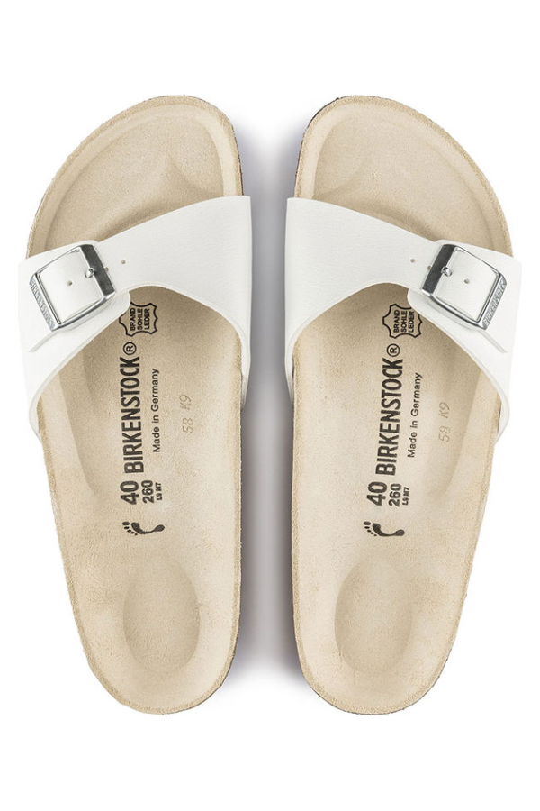 El BIRKENSTOCK Madrid es el miembro más antiguo de la familia de modelos, lo que lo convierte en un auténtico clásico. Lanzado como una "sandalia de gimnasia" hace medio siglo, este modelo simple de una sola correa se ha convertido en un firme favorito de la moda. La parte superior está hecha de material sintético Birko-Flor® resistente y agradable para la piel.