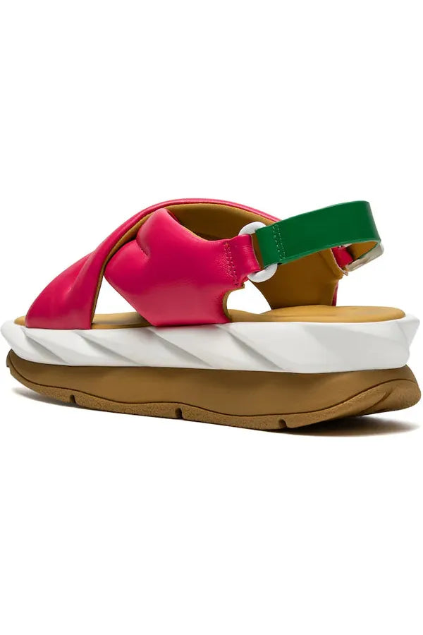 El modelo Mellow Moaes una sandalia clásica de tiras cruzadas en suave piel de oveja, con una correa ajustable en el talón y una hebilla metálica en contraste que aporta un toque llamativo ideal para el verano.