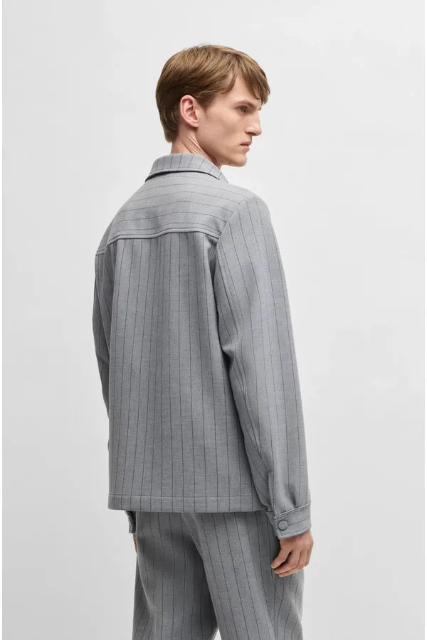 Una sobrecamisa BOSS Hombre moderna en tejido con raya diplomática. Este diseño relaxed fit se ha elaborado con elástico para resultar más cómodo y se completa con un logo caligrafiado.