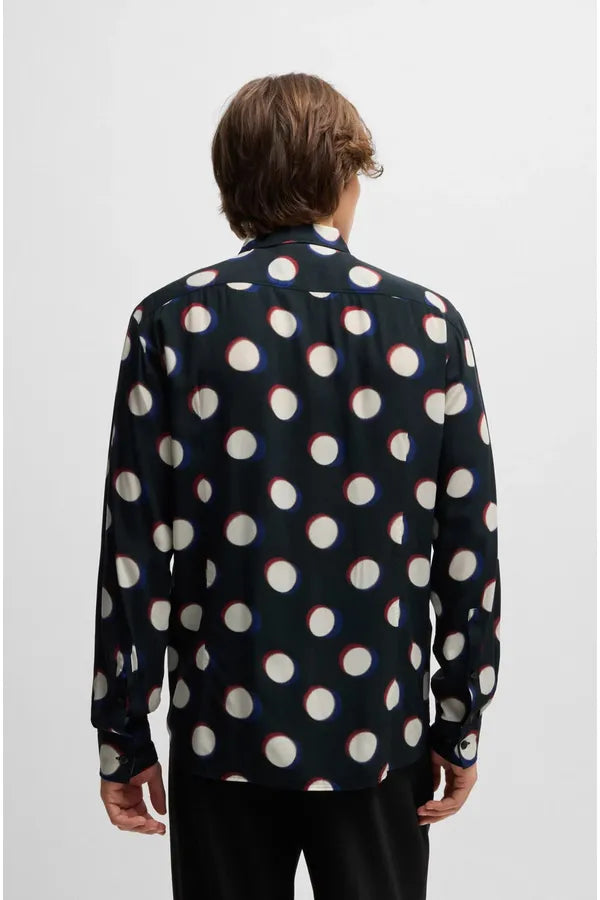 Una moderna camisa HUGO con estampado de nueva temporada. Esta prenda se ha confeccionado con un moderno slim fit.