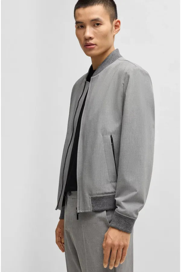 Una chaqueta BOSS Hombre slim fit con detalles de cazadora. Este diseño innovador se ha elaborado en tejido elástico técnico mezclado con lana.