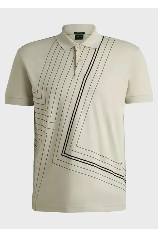 Un polo BOSS supersuave en algodón interlock. Este diseño regular fit presenta un detalle de la marca y una ilustración de líneas finas.