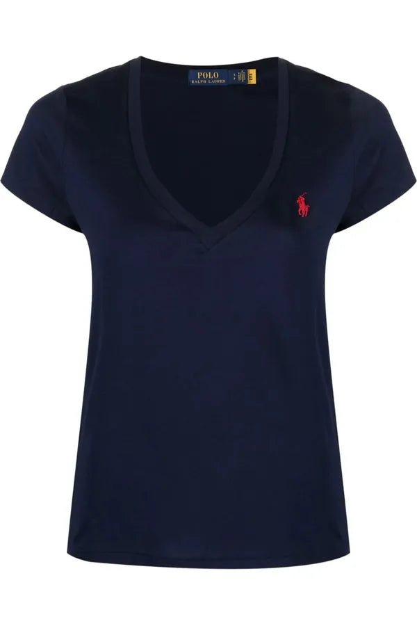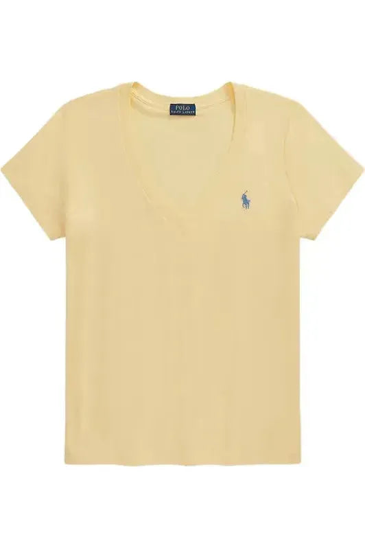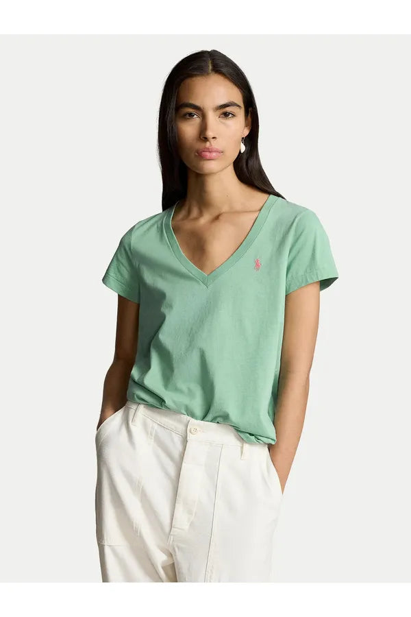 Esta camiseta básica con cuello de pico, elaborada con punto jersey de algodón lavado para una mayor suavidad, recibe una actualización icónica gracias a nuestro caballo bordado cuidadosamente en el lado izquierdo del pecho.