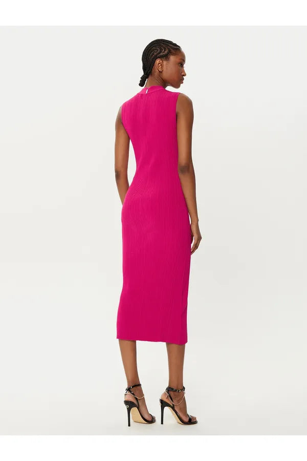 Sofisticación elegante: este vestido midi de cuello alto está confeccionado en un cómodo tejido acanalado que realza el ajuste y aporta una textura sutil. Realza el look con tacones y un bolso elegante para ir al trabajo o salir por la noche.