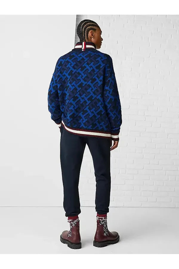 Este jersey oversize de puro algodón presenta detalles distintivos a contraste y un llamativo diseño integral del monograma TH.