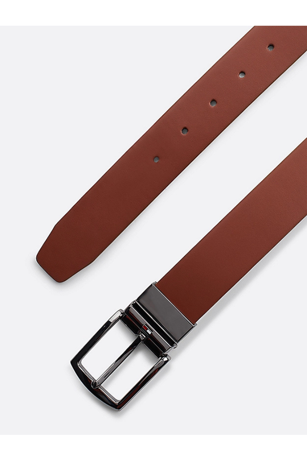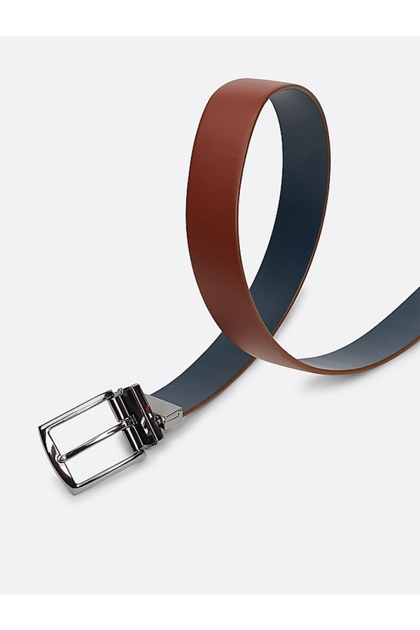 Elige entre dos looks sofisticados con este cinturón reversible de piel con una hebilla gruesa pulida que rota.