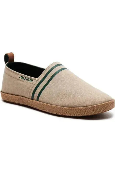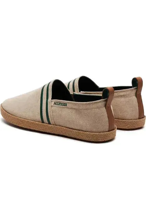 Consigue un estilo sencillo y elegante con estas alpargatas de chambray de lino con rayas a contraste para aportarles un aire deportivo.