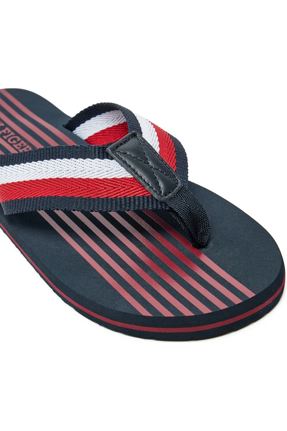 Destaca en la playa con estas chanclas, que lucen una vistosa cinta distintiva en las tiras para crear un look llamativo.