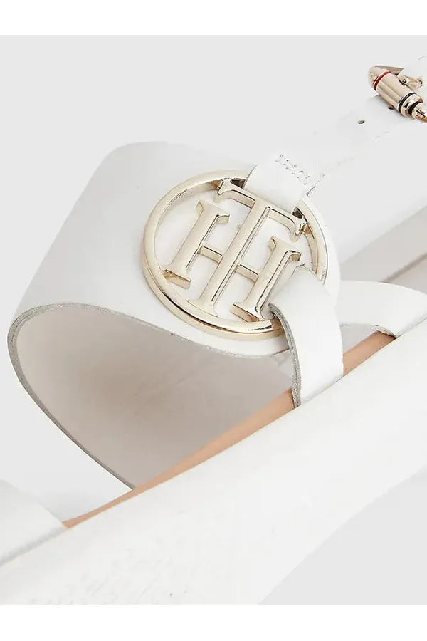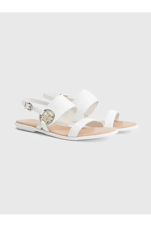 Estas discretas sandalias planas, confeccionadas en piel suave, se realzan con una insignia del monograma TH en la tira.