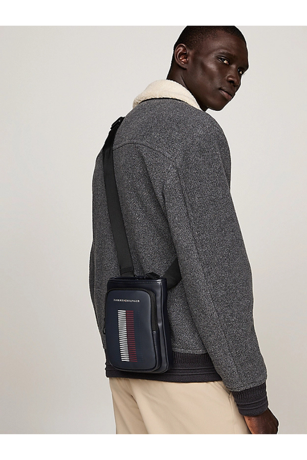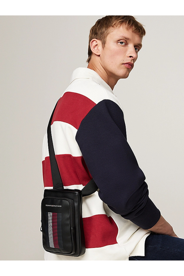 • Logo metálico de Tommy Hilfiger en la parte delantera