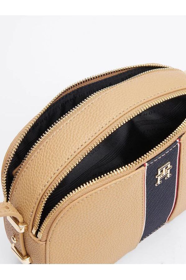 Los detalles característicos tejidos, los paneles con cierre y una placa con el monograma TH le otorgan a este bolso inteligente para cámara su clasificación de estilo premium.