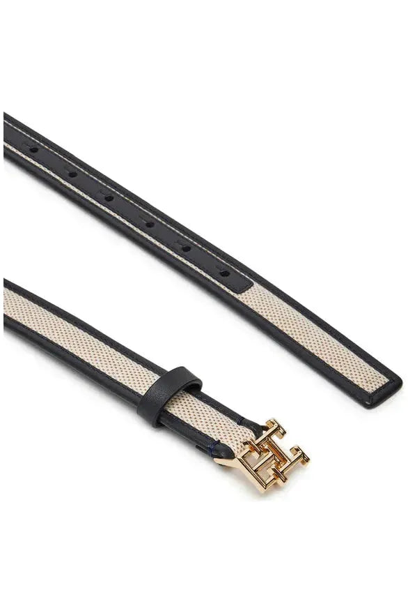 Este elegante cinturón destaca por su mezcla de texturas y se completa con una refinada hebilla del monograma TH en tono dorado como detalle distintivo.