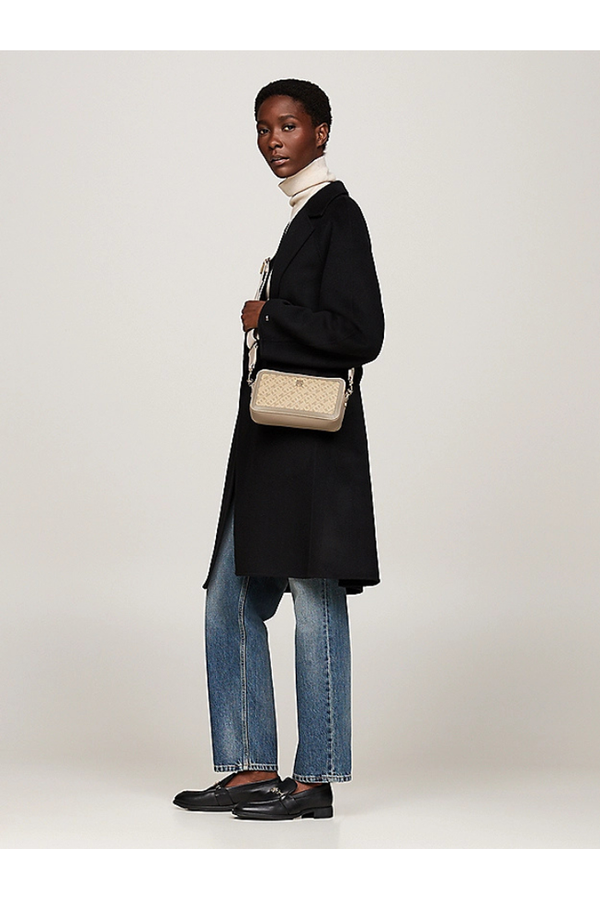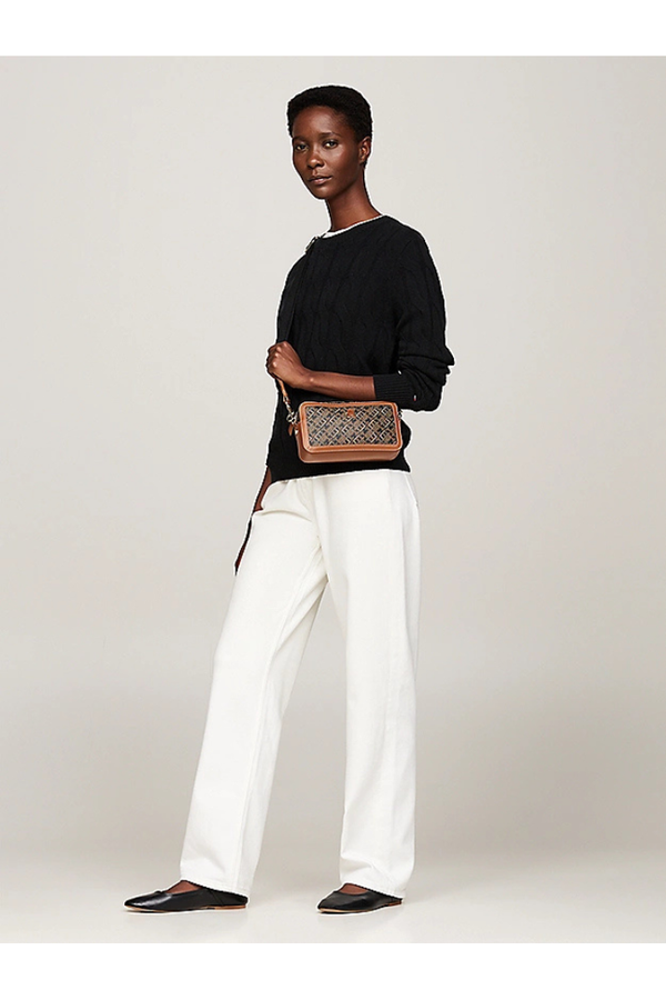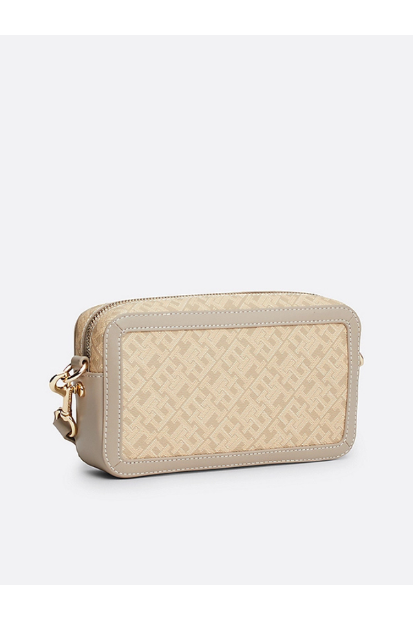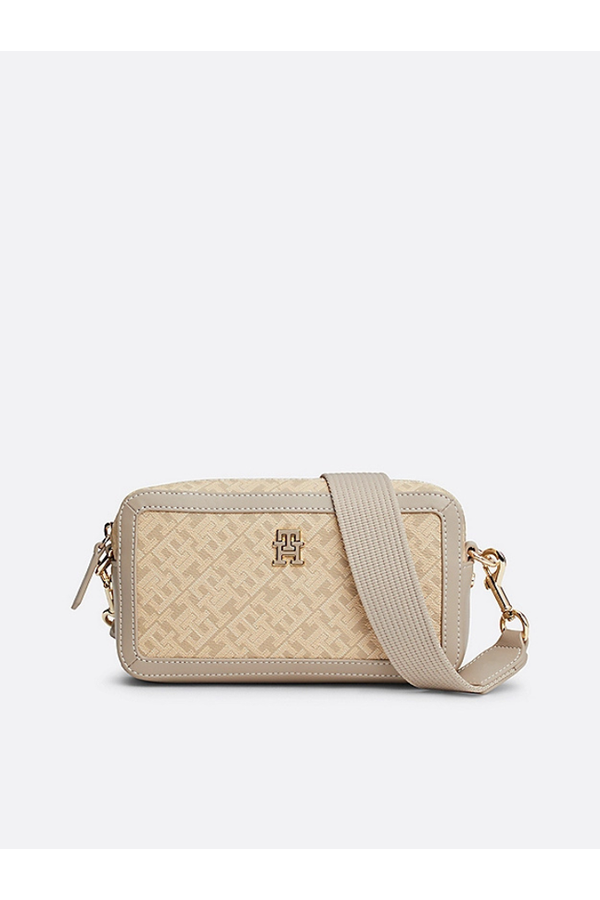 Este bolso compacto cuenta con una práctica bandolera extraíble y luce un llamativo estampado de monogramas TH.