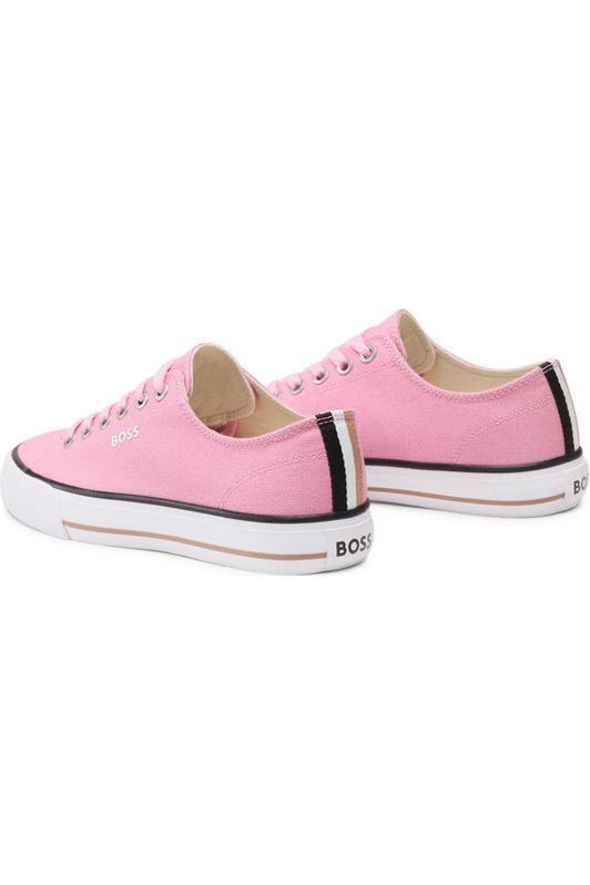 Unas cómodas zapatillas deportivas BOSS. Estas deportivas de caña baja presentan una raya distintiva en el contrafuerte del talón y están elaboradas en lona de algodón con un logo BOSS en la cordonera. La lengüeta y el tirador del talón están decorados con otros detalles de la marca.
