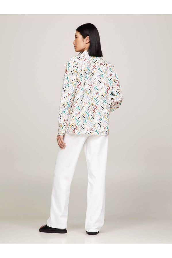 Irradia elegancia sin esfuerzo en tu próxima salida social con esta camisa, confeccionada en tela fluida adornada con un llamativo estampado del monograma TH.