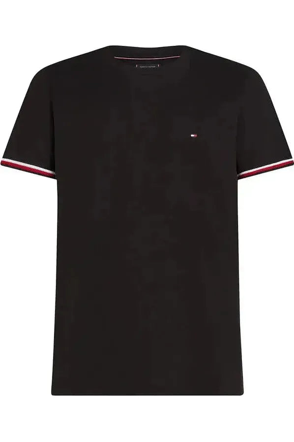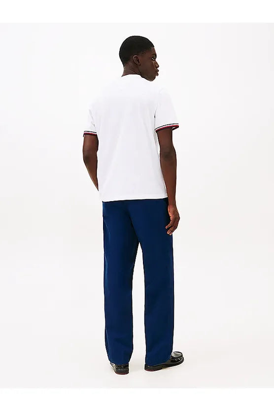 Esta camiseta de cuello redondo, confeccionada en puro algodón, luce detalles distintivos en los puños y el emblemático logo de Tommy Hilfiger bordado en el pecho.