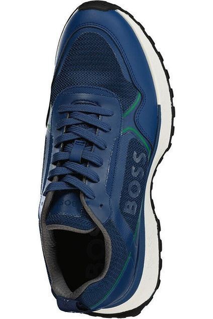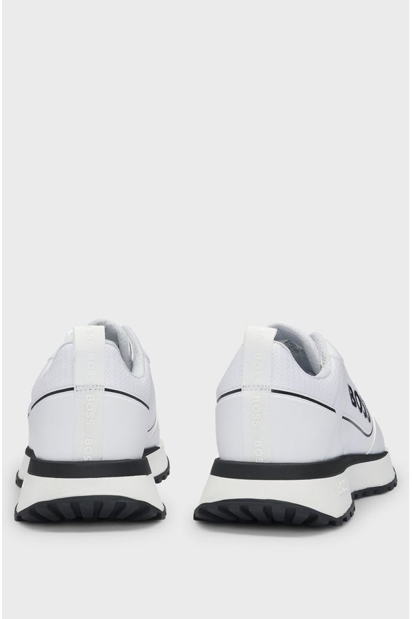 Un modelo atlético de deportivas BOSS, confeccionadas en una mezcla de materiales con detalles de malla, un llamativo logo en contraste y suela de goma EVA.