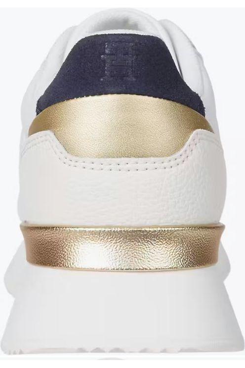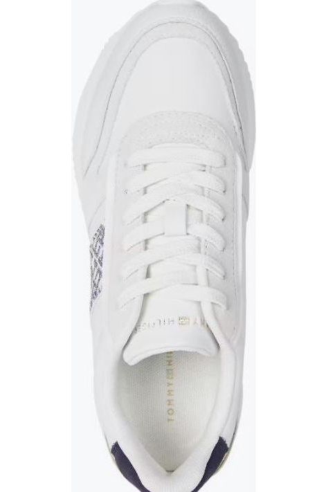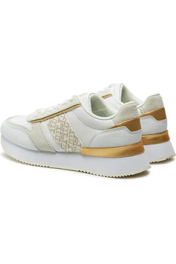 Estas zapatillas presentan un diseño de paneles de piel texturizada y ante, con ribetes metalizados y un estampado integral del monograma TH en el lateral.