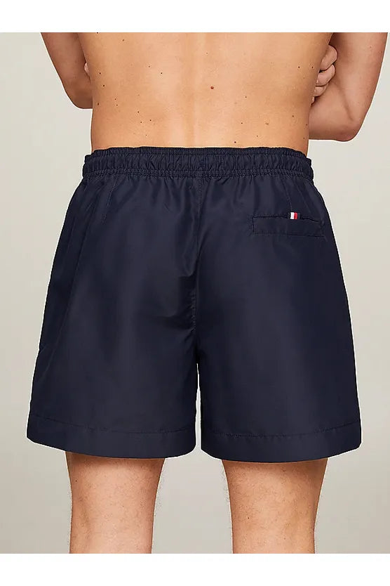 Presume de estilo en la playa y la piscina con este bañador de medio largo, que presenta un elegante logo bordado.
