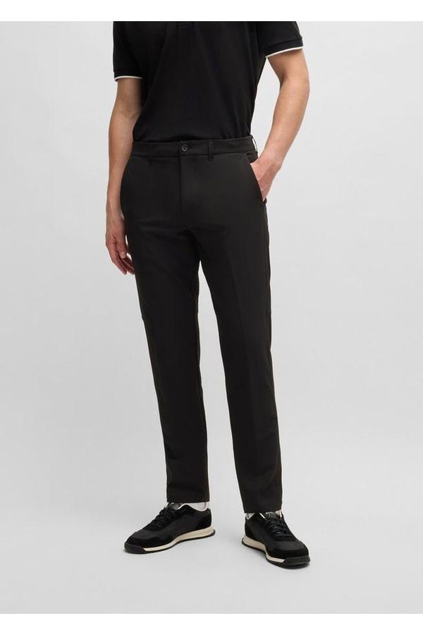 Este pantalón técnico de BOSS Menswear, de corte recto y pernera estrecha, está confeccionado en un tejido super elástico de fácil planchado y acabado repelente al agua. Está diseñado para afrontar el día a día más ajetreado.