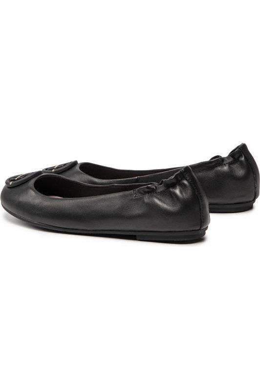 Estas elegantes bailarinas planas incorporan piezas metálicas tonales y presentan frunces elásticos en la parte trasera para mayor comodidad.