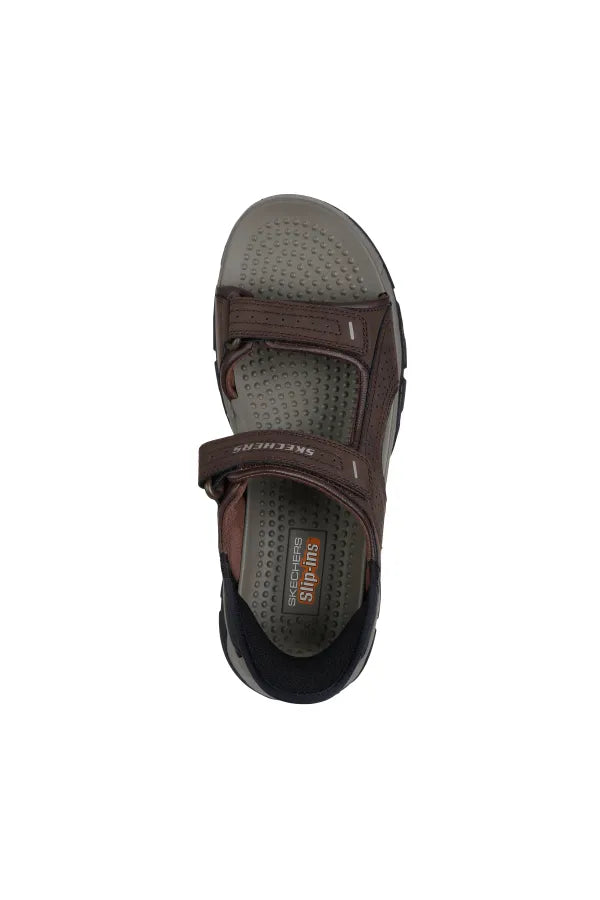 El estilo relajado y la comodidad se combinan en el modelo Skechers Hands Free Slip-Ins® Relaxed Fit™: Tresmen - Reece. Diseñada con el sistema de apoyo Heel Pillow™, esta sandalia cuenta con una parte superior con cierres de correa ajustables, talón Skechers Hands Free Slip-ins® y una cómoda plantilla con amortiguación.
